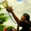 She mentions her spouse more than her qualifications and sometimes brings her children to events, which helps to soften the image of activist as joyless agitator. One daughter went with her to the Soka Gakkai; she skipped, charmed and stayed with her grandma after Wahid left. All very domestic.