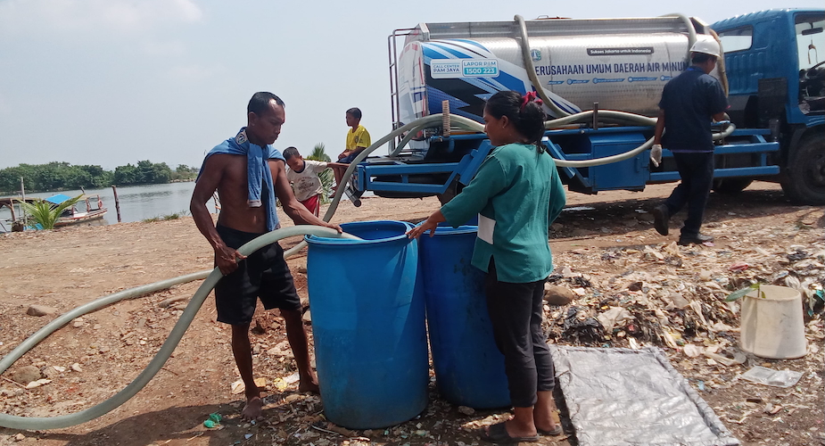 Suyono explained that although their housing is illegal, he and his neighbours now have access to tap water. Previously, residents’ proposals for supplies from the PAM Jaya (Jaya City-Owned Tapwater Company had gone nowhere due to the lack of legal housing documents. Their urgent need eventually reached a regional council candidate who was running for the election. A political deal was made: if he won in Marunda, PAM Jaya would provide water access for the community.