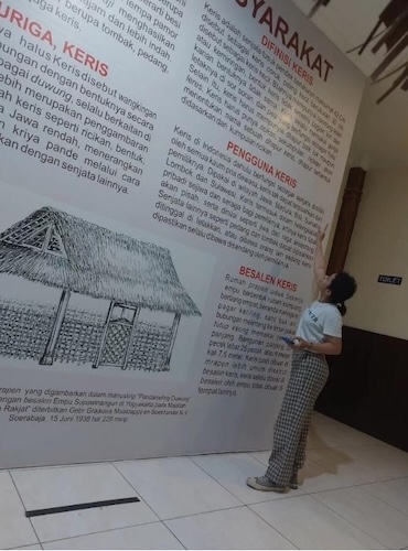 In Java, the keris not only takes on a significant role in family households but also in museums. The city of Solo, for example, has a keris museum. The permanent exhibition in ‘Museum Keris’ provides detailed explanation about the metaphysical layers that are culturally inscribed in this object. Two of my fellow students translated the elaborate textual descriptions of ‘the meaning of the keris in society’ (arti keris di masyarakat). Nowhere in the museums in the Netherlands had I seen any reference to these layers of the keris.