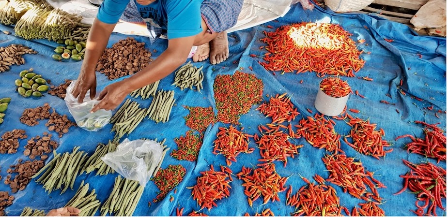 On a late morning in 2022, I balanced on the back of a friend’s motorbike as we wound our way through the dusty streets of Atambua Selatan, West Timor, toward the weekly market. By the time we parked, the market was already bustling. Stalls spilled out along the roadside, little mounds of colour spread on tarpaulin mats: bright red chillies, stacked beside earth-coloured dried betel nuts, green betel fruits and pepper stalks, and spring onions tied in neat bundles with string.